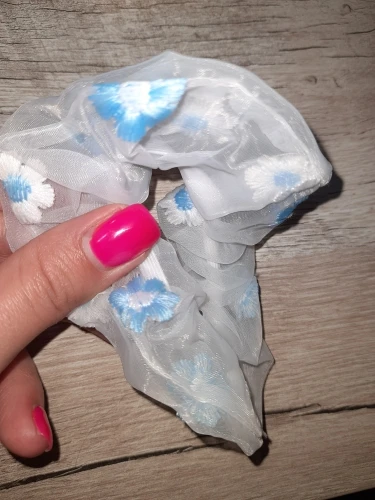 Резинка для волос женская, розовая, голубая, с вышивкой и цветами