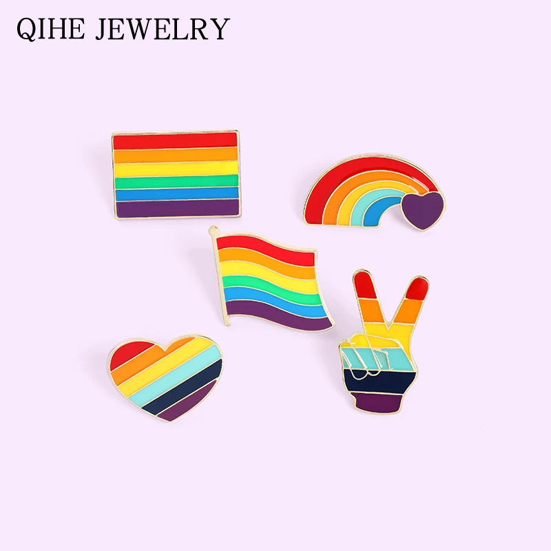 Эмалированные булавки ЛГБТ-дизайна, радужные креативные броши в форме сердца и флага, модная Металлическая Булавка для лацкана, значок, ювелирное изделие, подарок для друзей, оптовая продажа