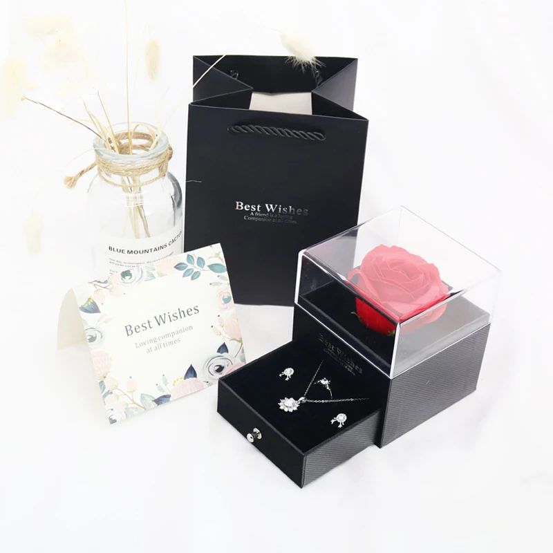 Искусственная Роза в коробке с ожерельем для пары, Вечные цветы, св...
