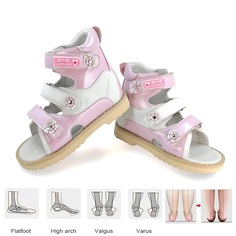 Ортопедические сандалии для девочек ortoluckкредиток, открытый носок, цветы, пляжная обувь, Летние босоножки для малышей