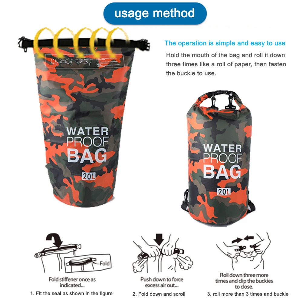 3. Водонепроницаемые сумки являются основным оборудованием для кемпинга, рыбалки, фестивалей, пляжей, пеших прогулок, гребли на каноэ, альпинизма и т. д., чтобы ваши товары были нетронутыми и сухими.