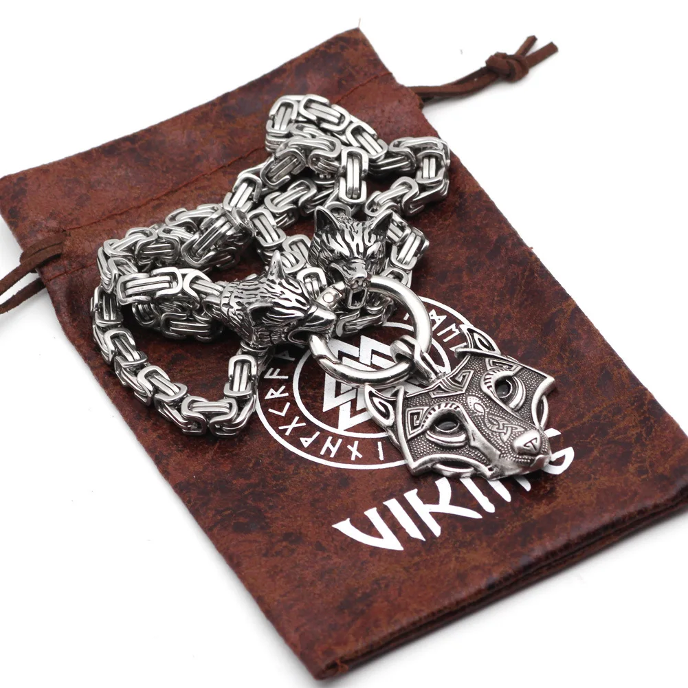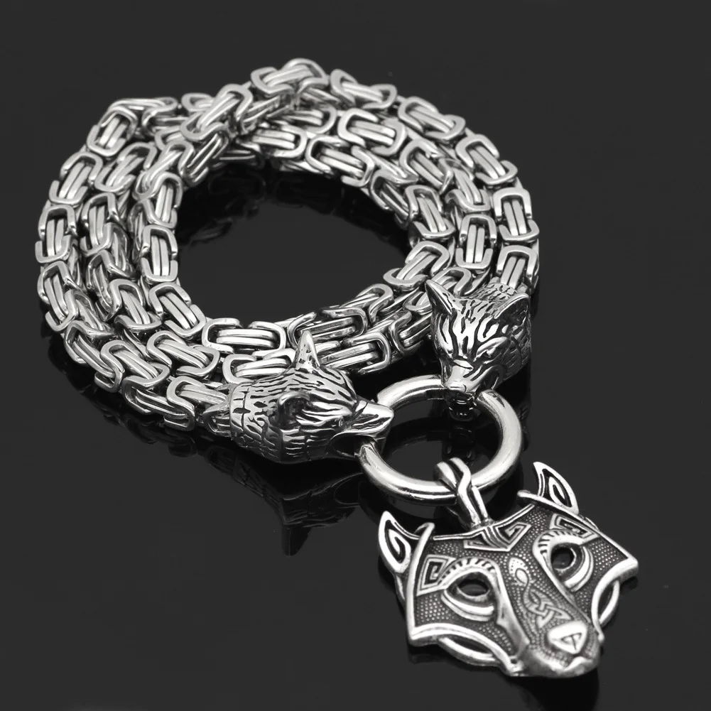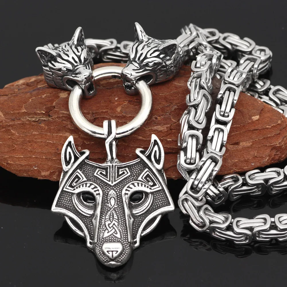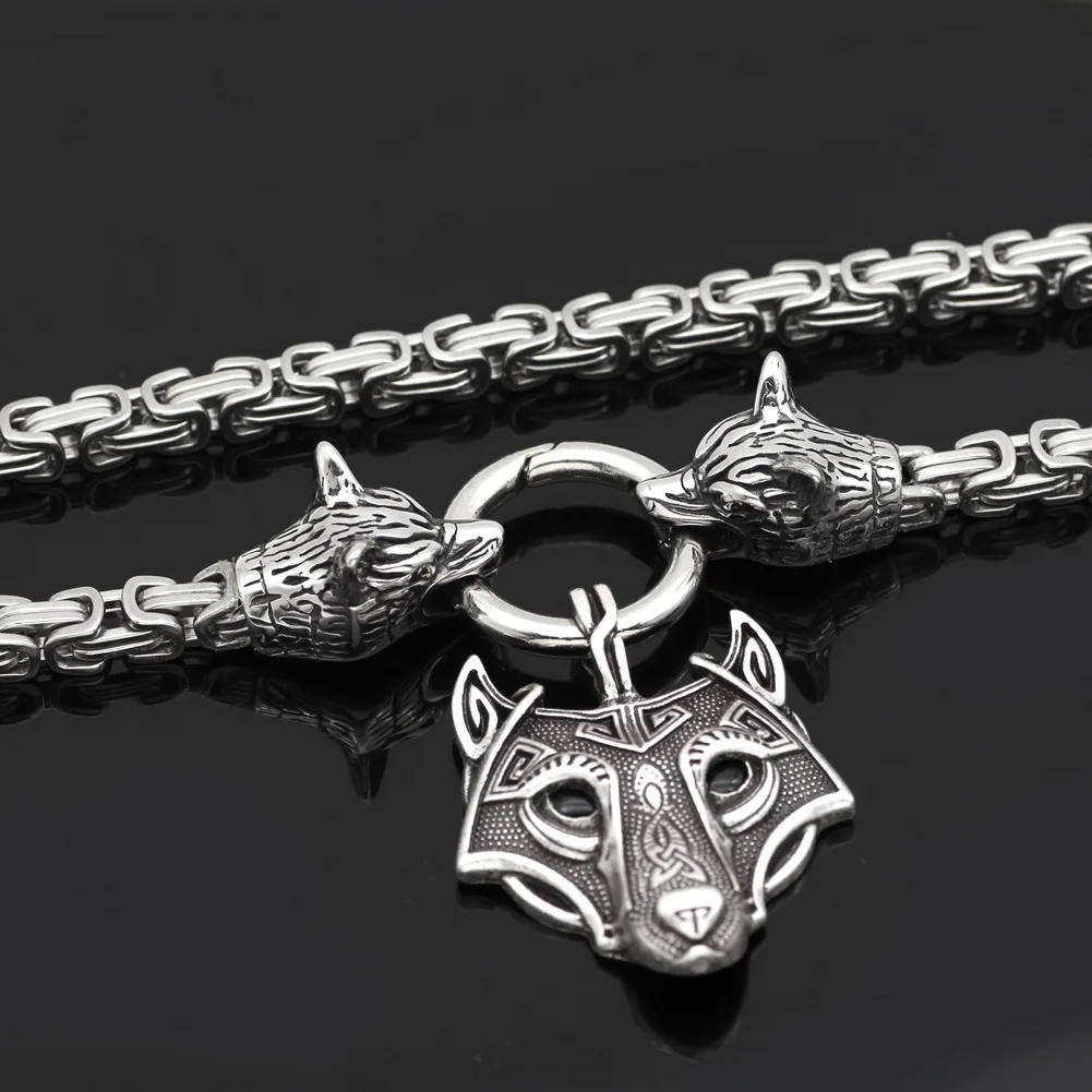 Скандинавский викингов Прямая поставка славянский кельтский волк голова титановая сталь кулон ожерелье с квадратной цепью для мужчин женщин Подарочные ювелирные изделия