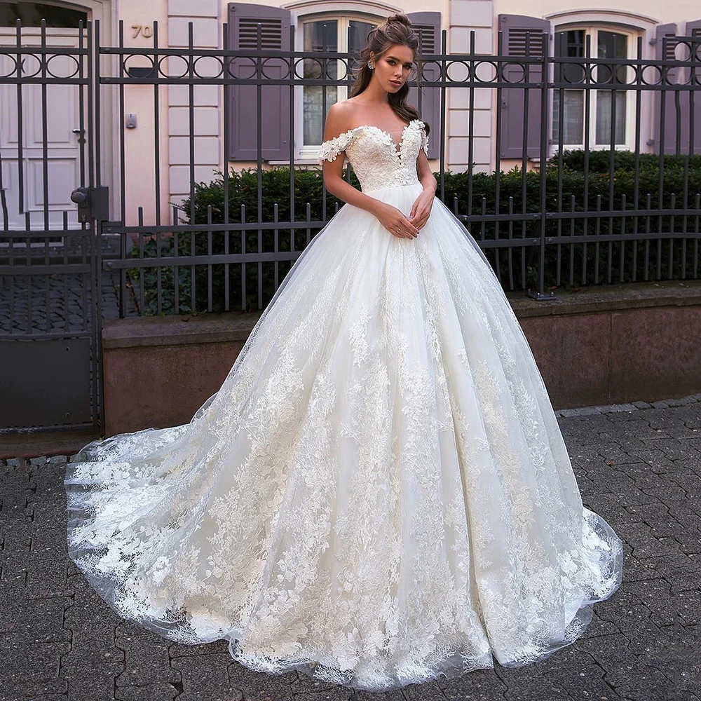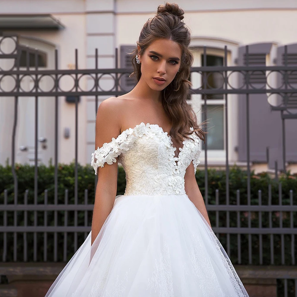 Элегантное бальное платье UZN, свадебное платье с открытыми плечами, кружевное свадебное платье с цветочной аппликацией, платье для невесты на заказ