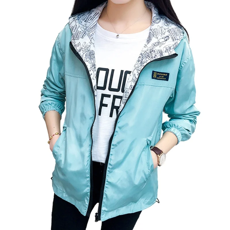 Женская Весенняя куртка с капюшоном, повседневная Двухсторонняя вет...