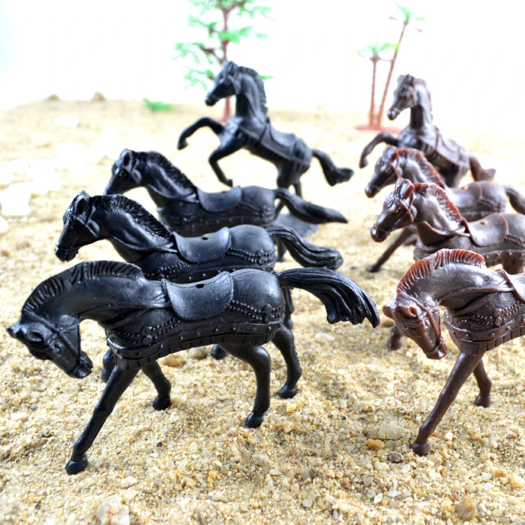 Изготовлен из прочного мягкого пластика, твердый.Размер солдатика: 1,96-2,75 дюйма.В комплекте: солдатики 12 шт + лошади 8 шт + кавалеристы 8 шт.Замечательная DIY Модель Фигурки игрушки для мальчиков.В седле есть отверстие, кавалеров и лошадей можно собрать вместе.