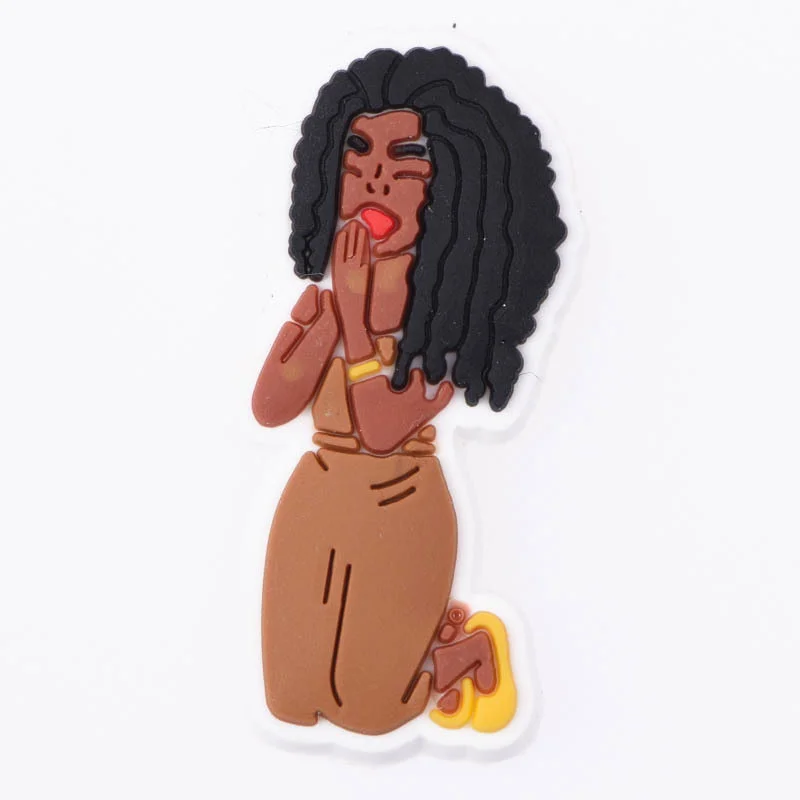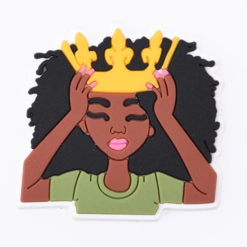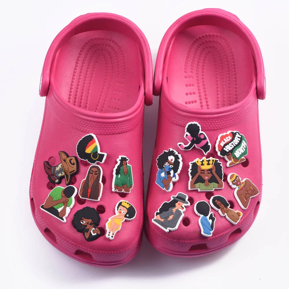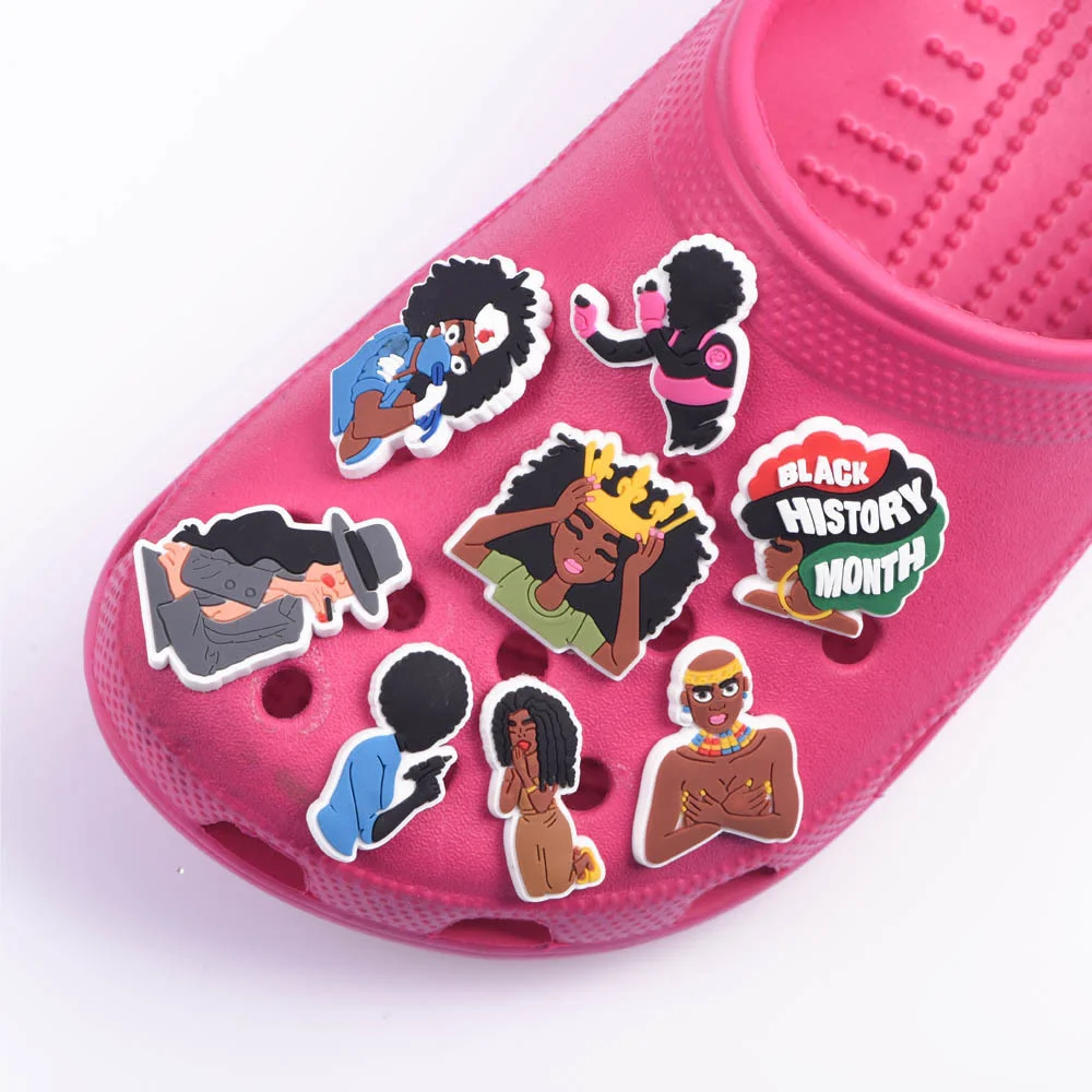 1 шт., новинка 2021, женские Кроксы, подвески для обуви, Дамская королева, очаровательные аксессуары, черные украшения для обуви для девушек, медсестер меланин