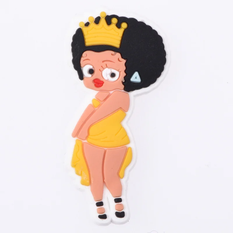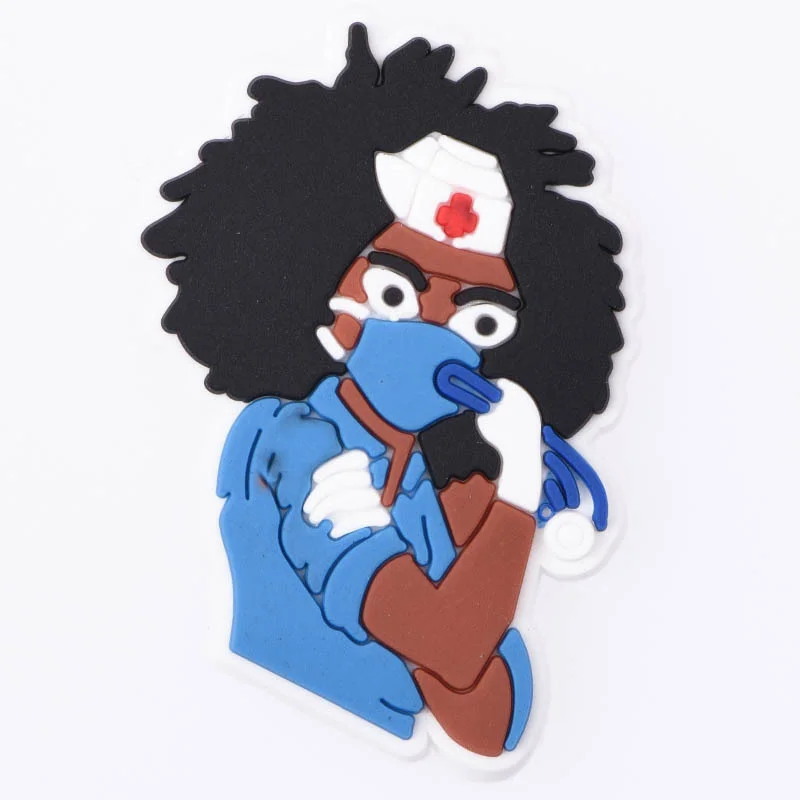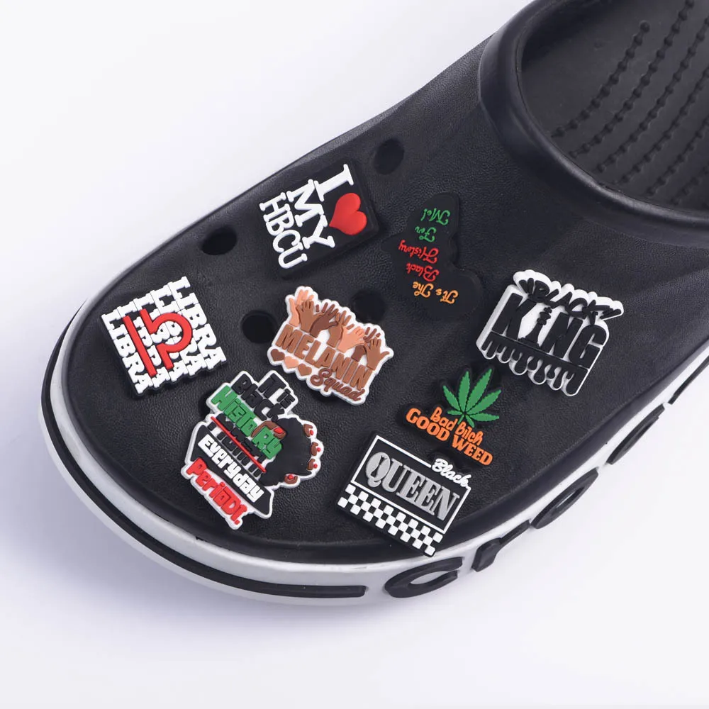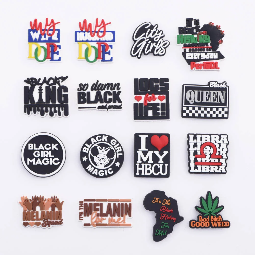 1 шт., новинка 2021, женские Кроксы, подвески для обуви, Дамская королева, очаровательные аксессуары, черные украшения для обуви для девушек, медсестер меланин