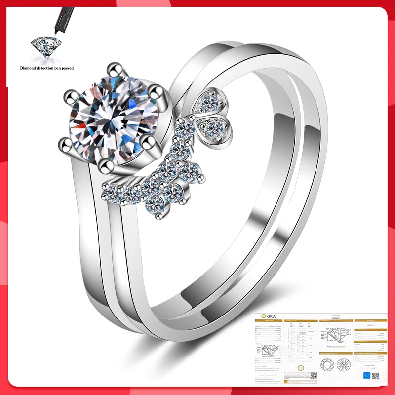 Женское Обручальное кольцо с муассанитом, регулируемое кольцо из се...