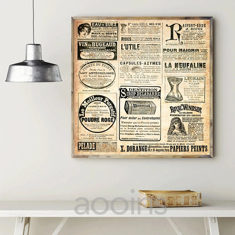 PurposeAntique Newspaper Advertisement Art Painting Picture Home Decor