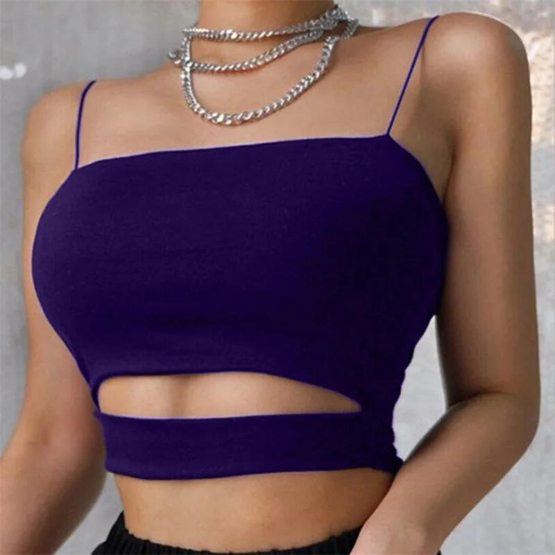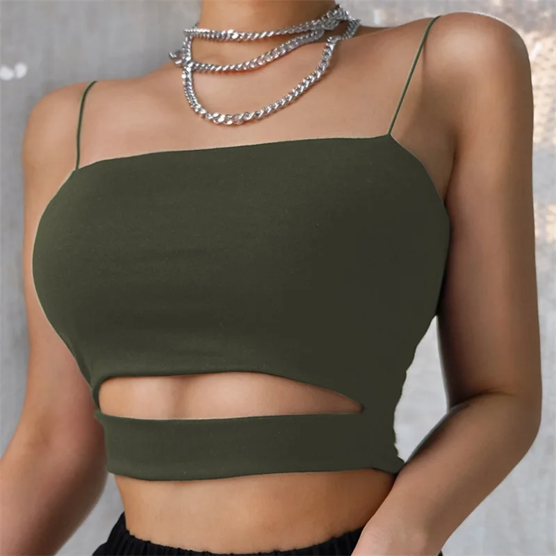 Новинка 2022, модная пикантная Женская Летняя Сексуальная Повседневная короткая футболка без рукавов с вырезами, укороченный топ, майка на бретелях, блузка