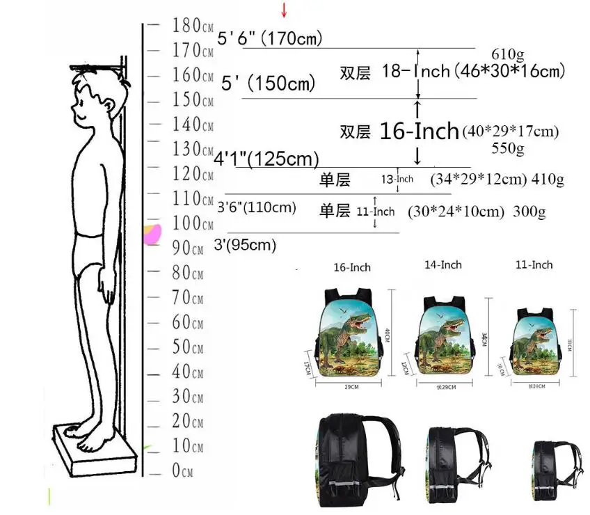 11 дюймов Размер: 30*24*10 см 13 дюймов Размер: 33*29*12 см 16 дюймов Размер: 40*29*17 см