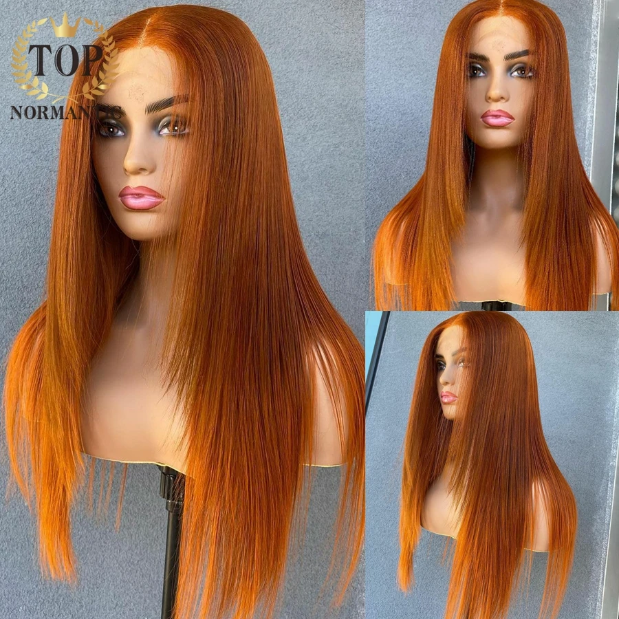 Topnormantic имбирь оранжево-Цвет 13x4 кружева передние парики с детскими волосами бразильский Реми человеческие волосы шелковистые прямые парики для женщин