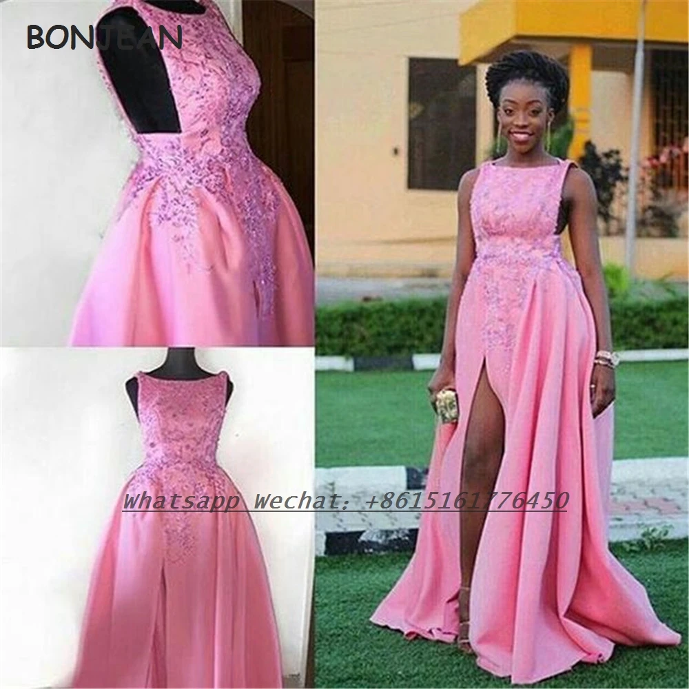 Розовое платье невесты es 2021, а-силуэт, атласное, с разрезом, кружевное с аппликацией из бусин, Африканское платье невесты, размера плюс для женщин, свадьба