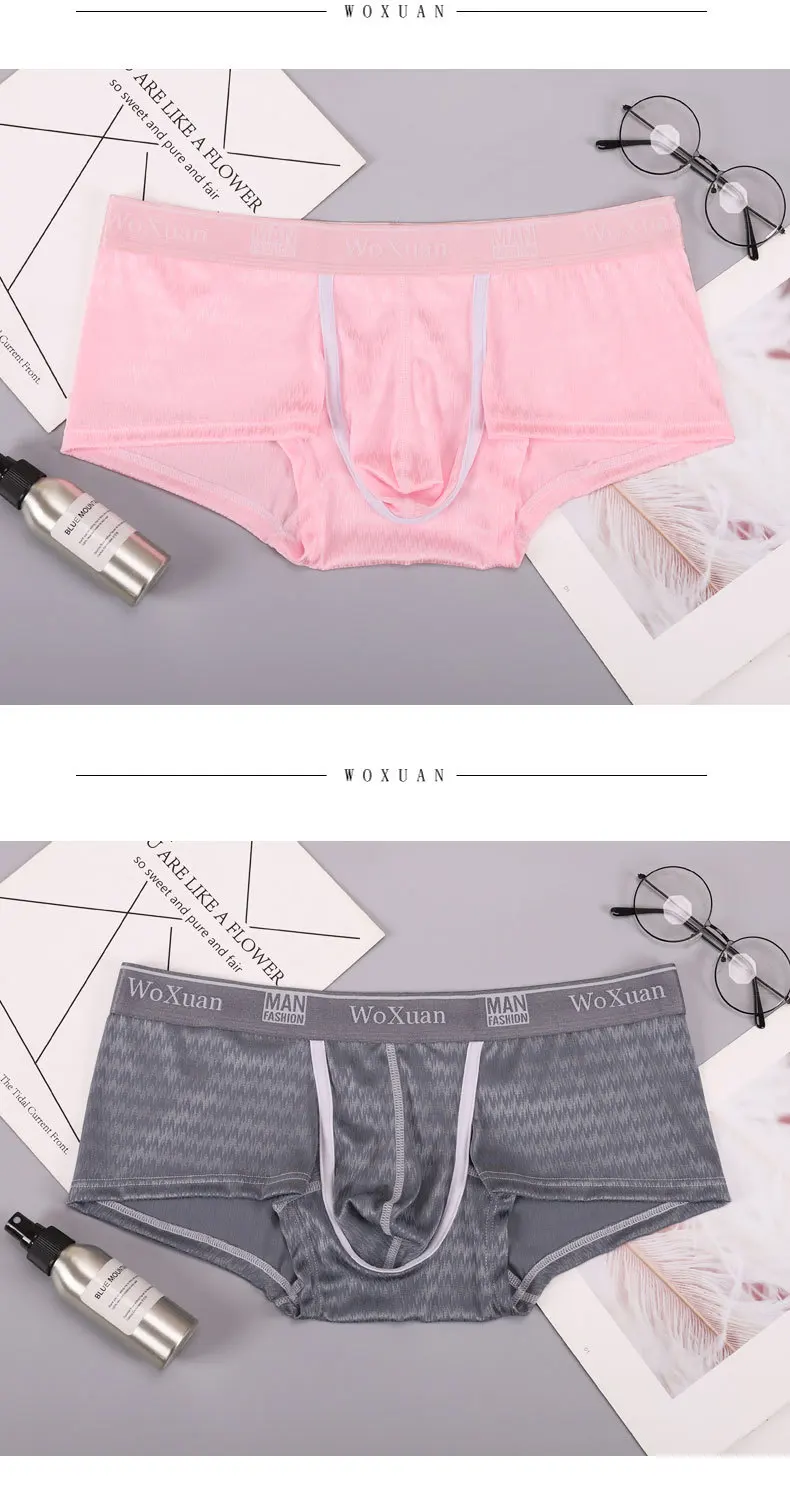 Мужские сексуальные шелковые нейлоновые боксеры, шорты забавное белье, мужские геи с мешочком для пениса, бандаж для пениса, мужское нижнее белье, мужские шорты с начесом, жаккардовые