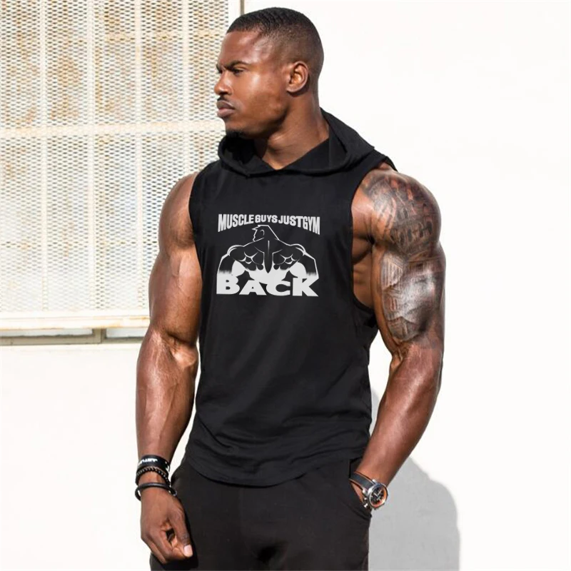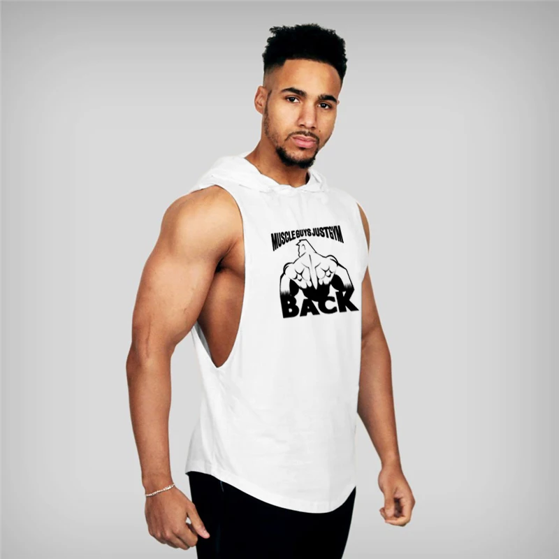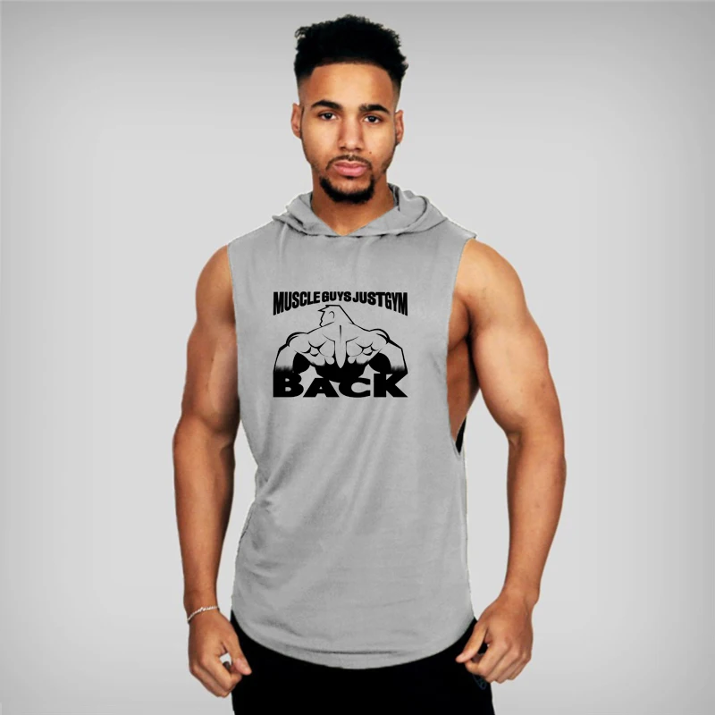 Мужская майка с капюшоном, хлопковая, для занятий в спортзале