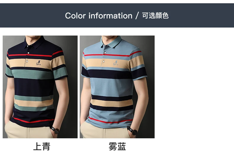 Высококачественная Новая летняя брендовая Мужская Дизайнерская рубашка поло в полоску с вышивкой, повседневные топы с коротким рукавом, модная мужская и женская одежда 2021 Свойства: цвет Wu Lan; Размер XXXL (Официальный магазин Langbeeyar)