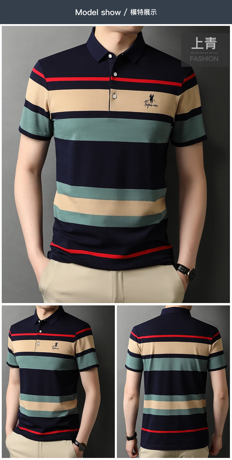 Высококачественная Новая летняя брендовая Мужская Дизайнерская рубашка-поло в полоску с вышивкой, повседневные топы с короткими рукавами, модная мужская одежда 2022