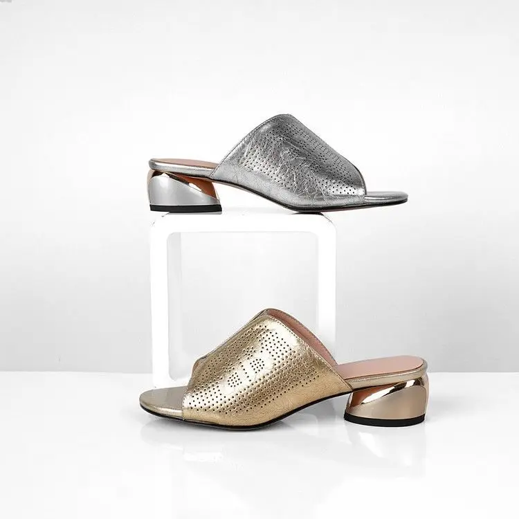 Удобные шлепанцы из мягкой кожи; Женские сандалии на высоком каблуке серебристого цвета; Коллекция 2021 года; Летние тапочки; Повседневная обувь; Размеры 34-42