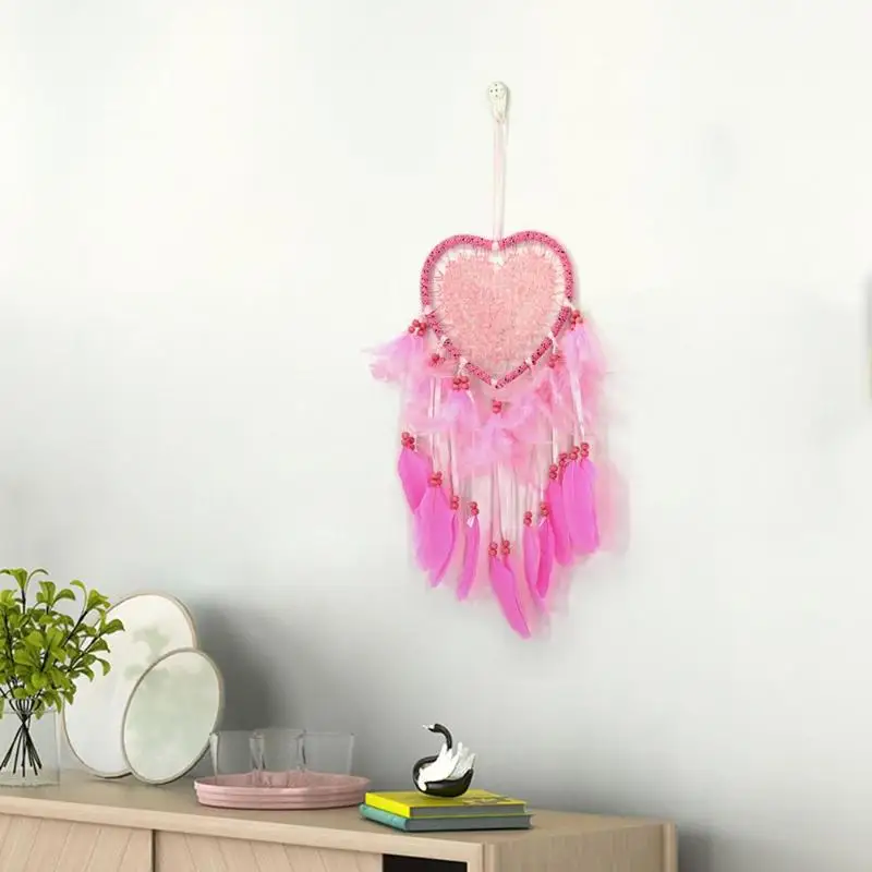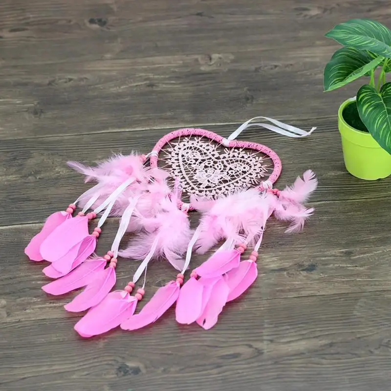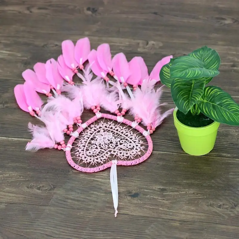 Подвесное украшение Ловец снов, розовые перья, ручная работа