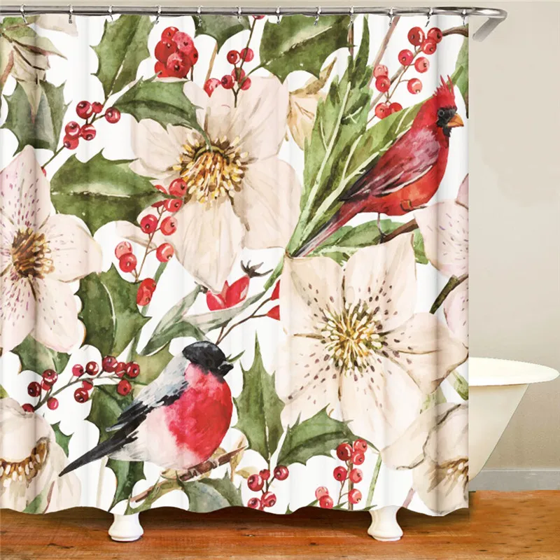 Шторы для душа водонепроницаемые из полиэстера, занавески с перегородками, с изображением цветов, красных роз, птиц, природного ландшафта, с крючками