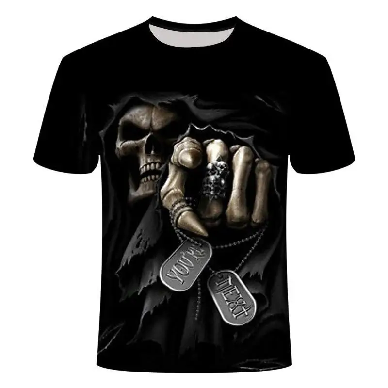Футболка с 3D-принтом в виде черного черепа, мужская летняя футболк...