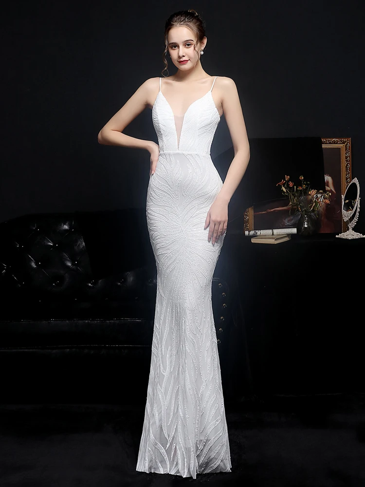 YIDINGZS белое платье на бретельках, вечернее платье с блестками и ...