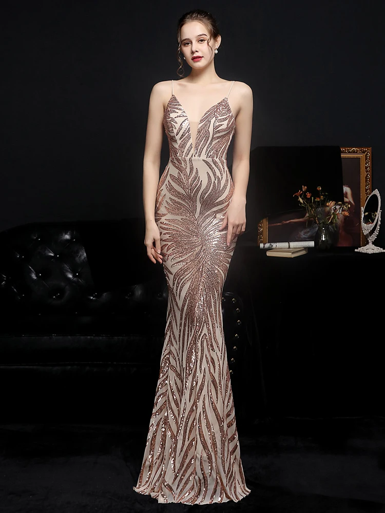 Женское вечернее платье YIDINGZS, с золотыми блестками, на бретелях...