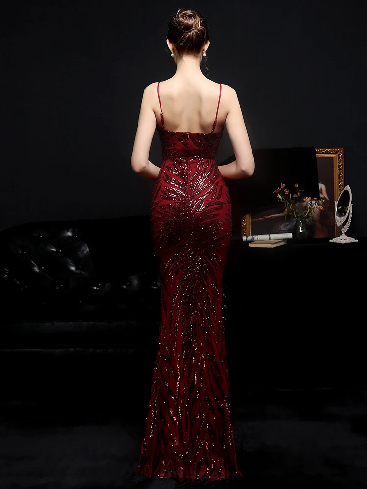 YIDINGZS V образным вырезом темно-красное вечернее платье с пайетка...