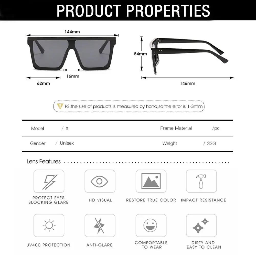 Солнцезащитные очки унисекс, квадратные, крупные, с плоским верхом