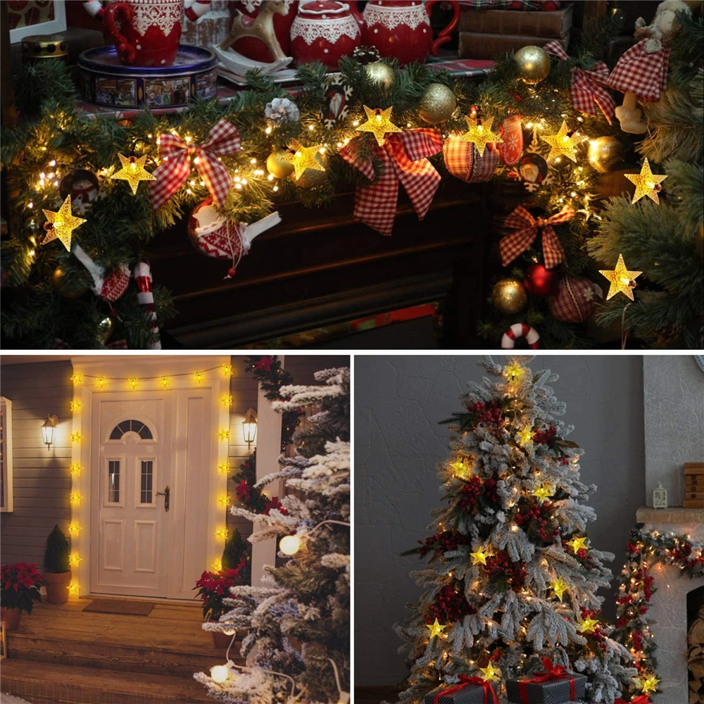 Гирлянда с мерцающими звездами на солнечной батарее, 203050100 светодиодов