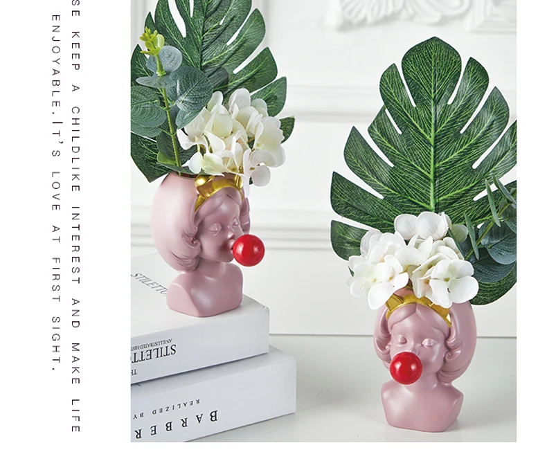 Nordic Стиль смолы ваза для милых девочек жевательной резинки фигурка декоративный горшок для растений современный дом декоративная ручка держатель