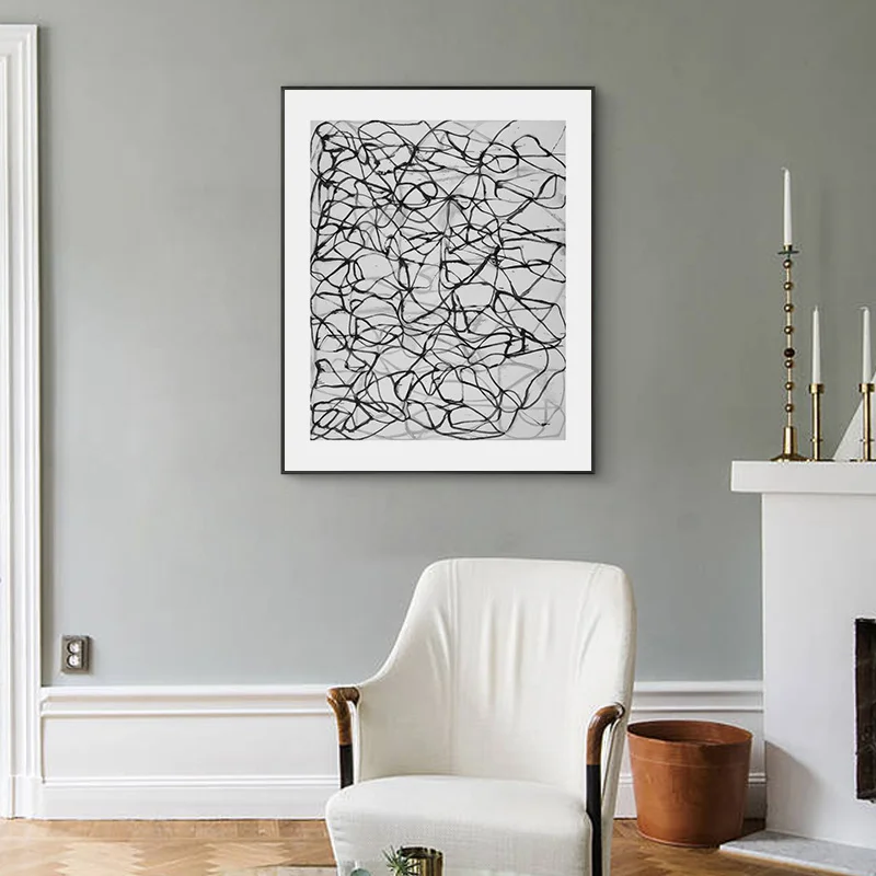 Простая Современная Абстрактная черно-белая линия, черно-белая и серая Минималистичная декоративная живопись, картины