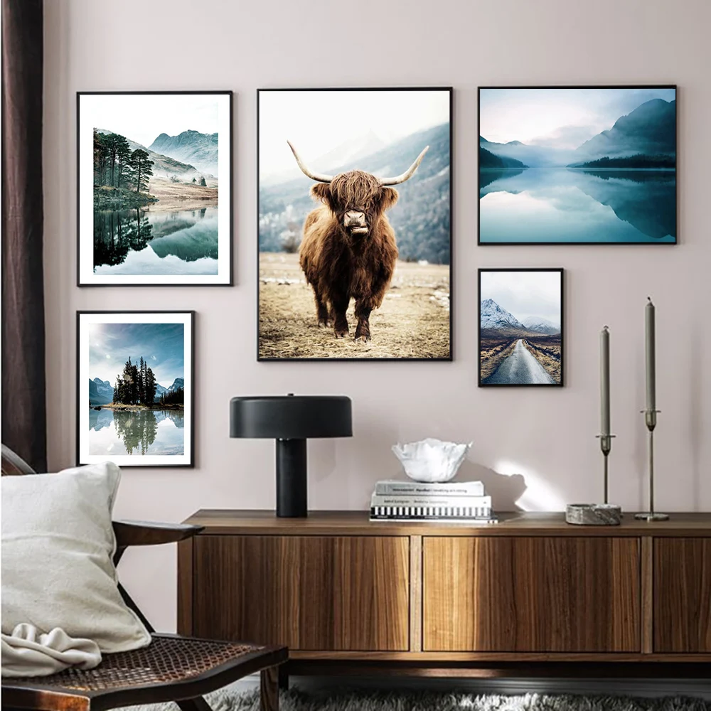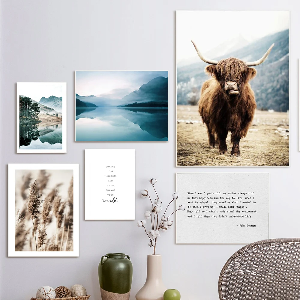 Highland корова тростник осенний природный пейзаж настенная Картина на холсте скандинавские постеры и принты для гостиной Декор настенные картины