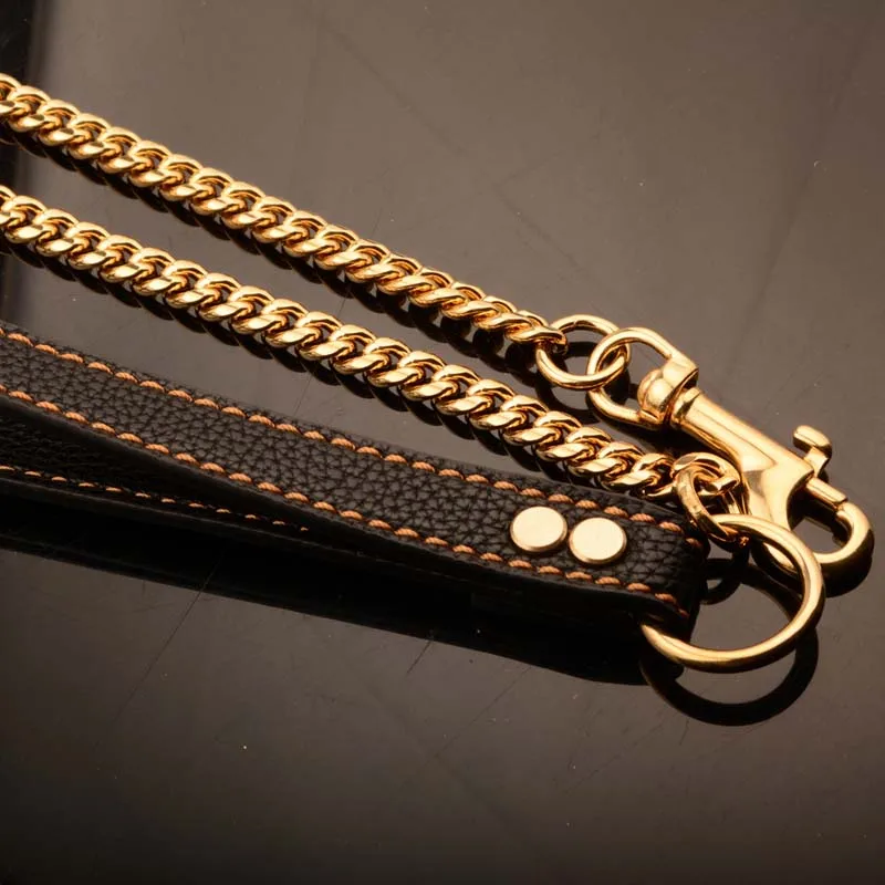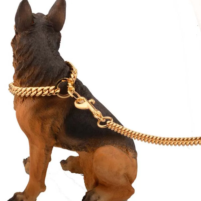 Ошейник и поводок для дрессировки домашних животных, из нержавеющей стали стальная цепь для собаки, толщина золотистого цвета, Питбуль Бульдог