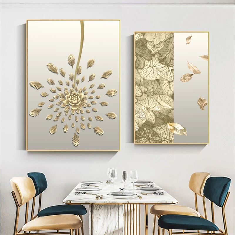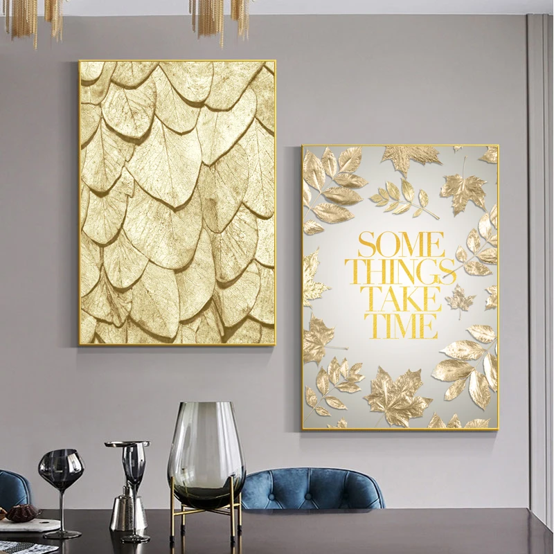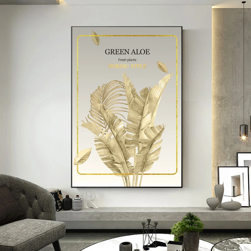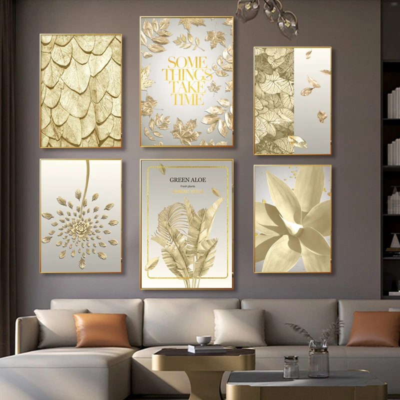 Холщовая печать в скандинавском стиле, художественный постер, Золотой оставьте великолепный ретро, гостиная, диван, домашняя настенная живопись и подвесное украшение