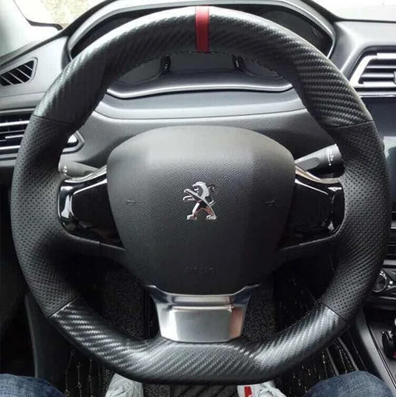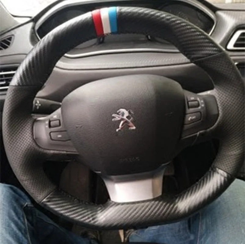 DIY ручной работы из кожи и замши с углеродным волокном чехол рулевого колеса автомобиля для Peugeot 308 серии аксессуары для интерьера