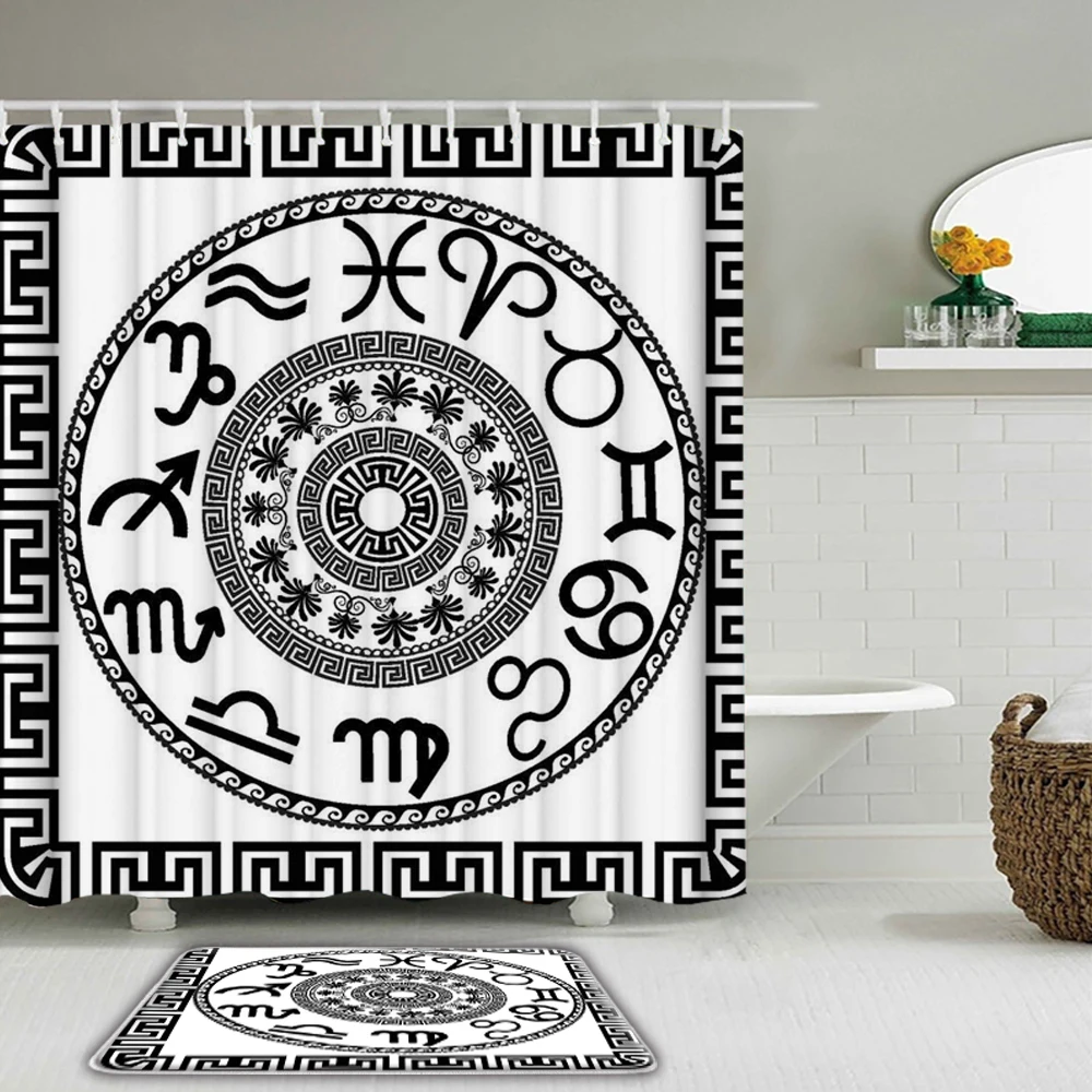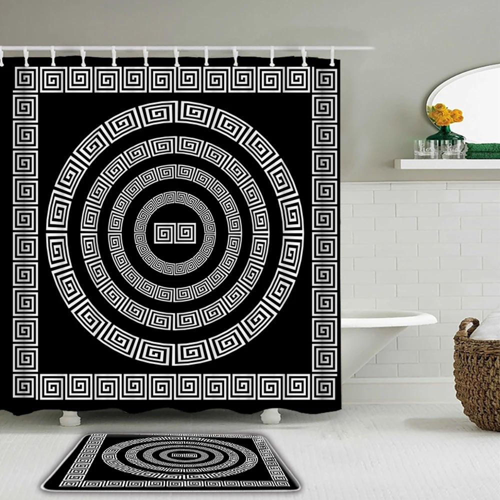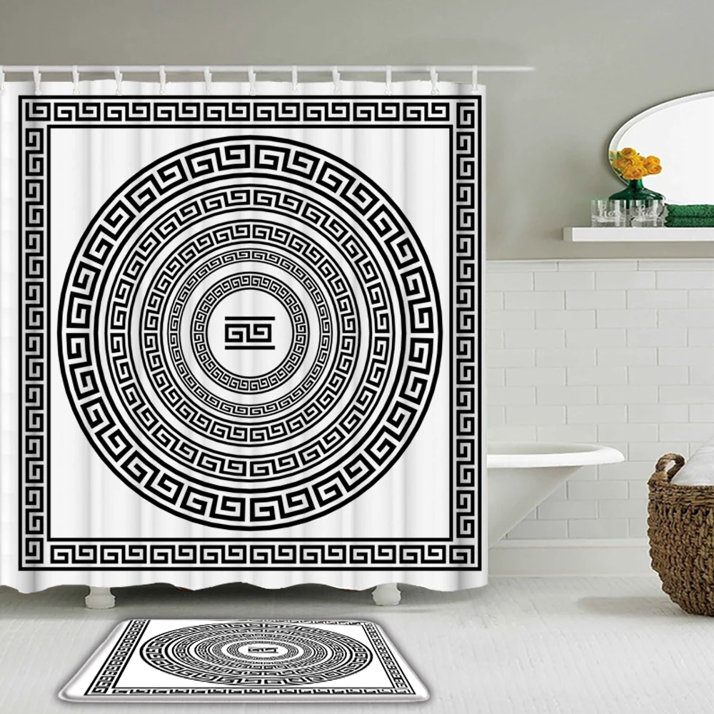 Занавеска для душа в этническом стиле с греческими клавишами, s набор, занавеска для ванной из полиэстера, традиционная Антискользящая кайма меандра, коврик, Декор