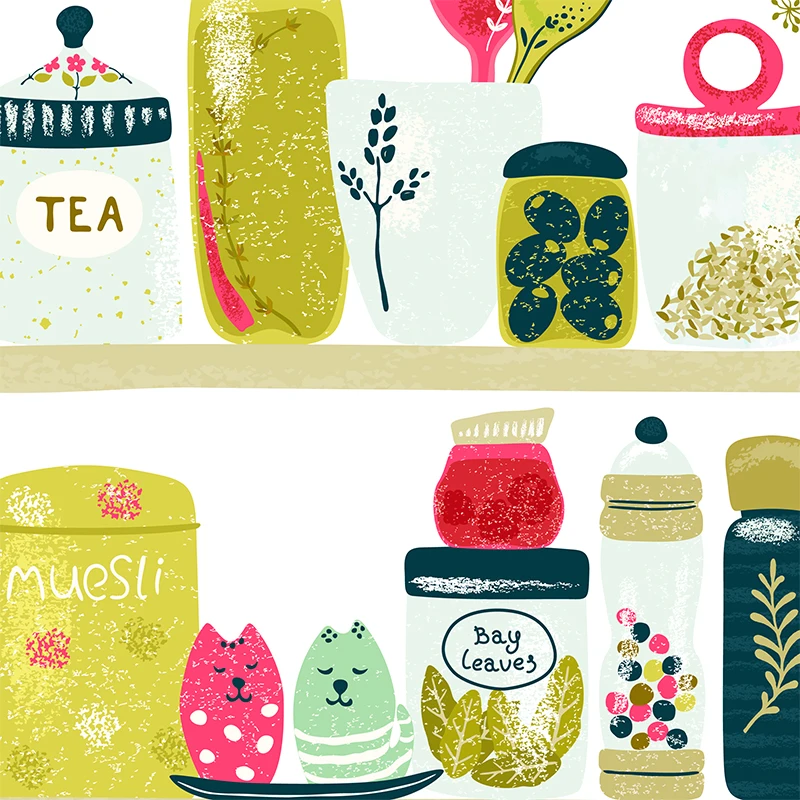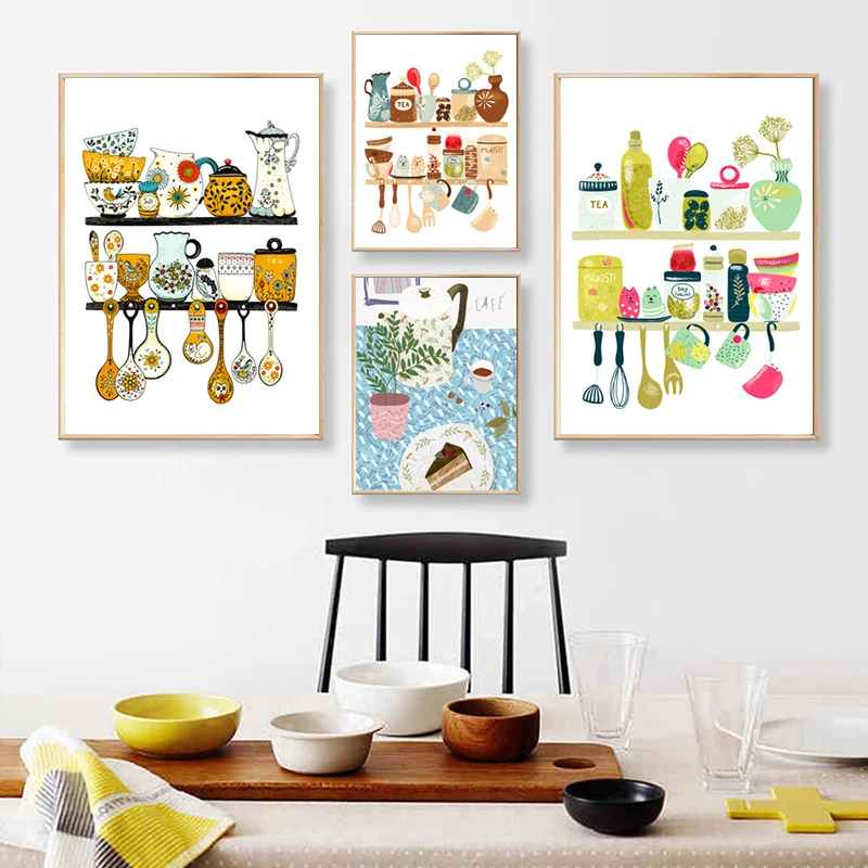 Настенная декоративная Картина на холсте для кухни, чашки тарелки, чаши, кофейное растение, десерт, иллюстрация, плакат, принты