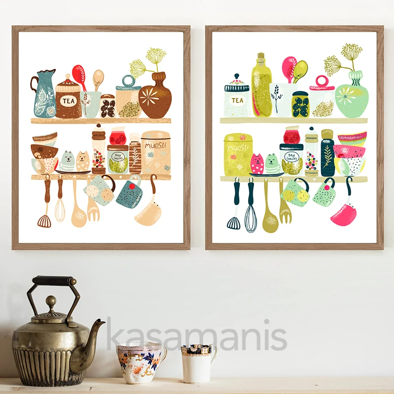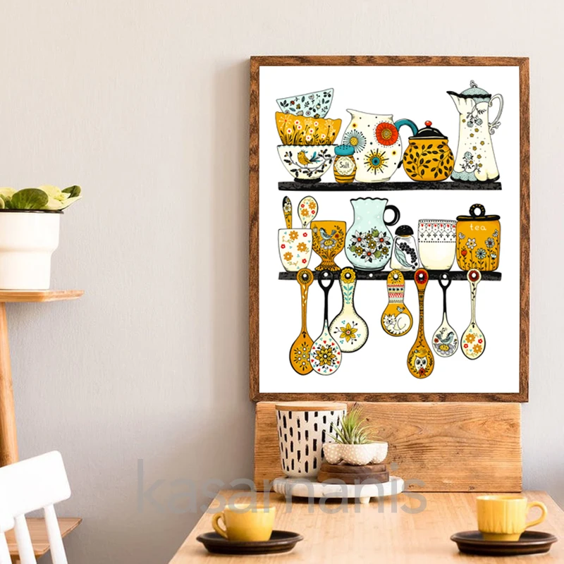 Ретро керамическая посуда или посуда настенные картины чашки тарелки миски холст художественные принты деревенский плакат кухня скандинавский Декор