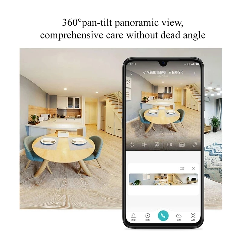Принять двойной дизайн головки двигателя, 360 ° Горизонтальный угол обзора, 108 ° Вертикальный угол обзора. Управление приложением Mijia, панорамный рисунок, чтобы увидеть, что означает.