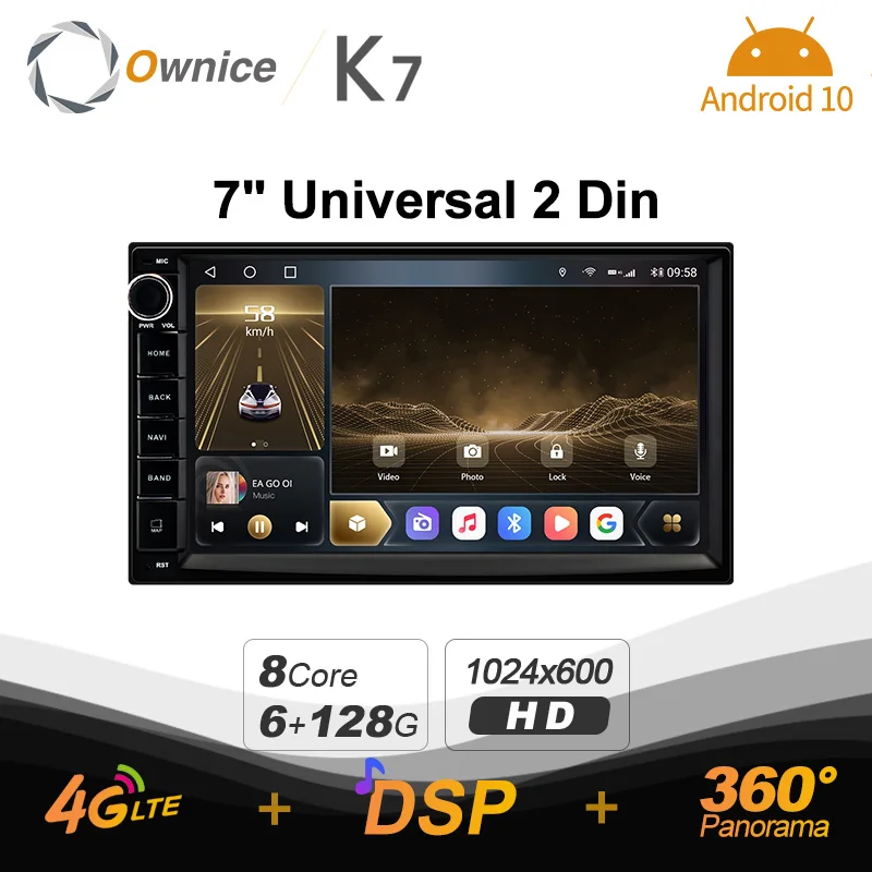 Автомагнитола K7 Ownice, автомобильный радиоприемник 2 Din на Android 128, ОЗУ 6 ГБ, ПЗУ 10,0 ГБ, для Toyota, Nissan, VW, Auto Audio 360