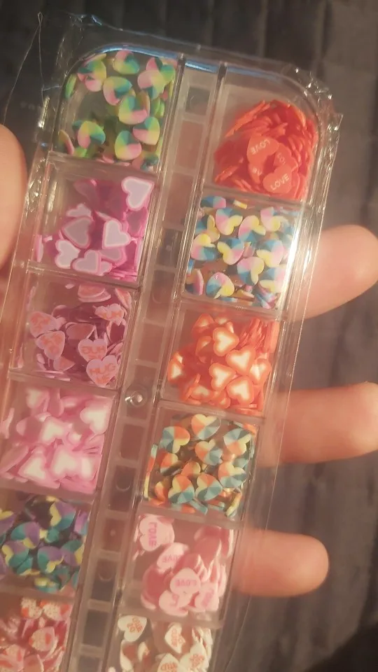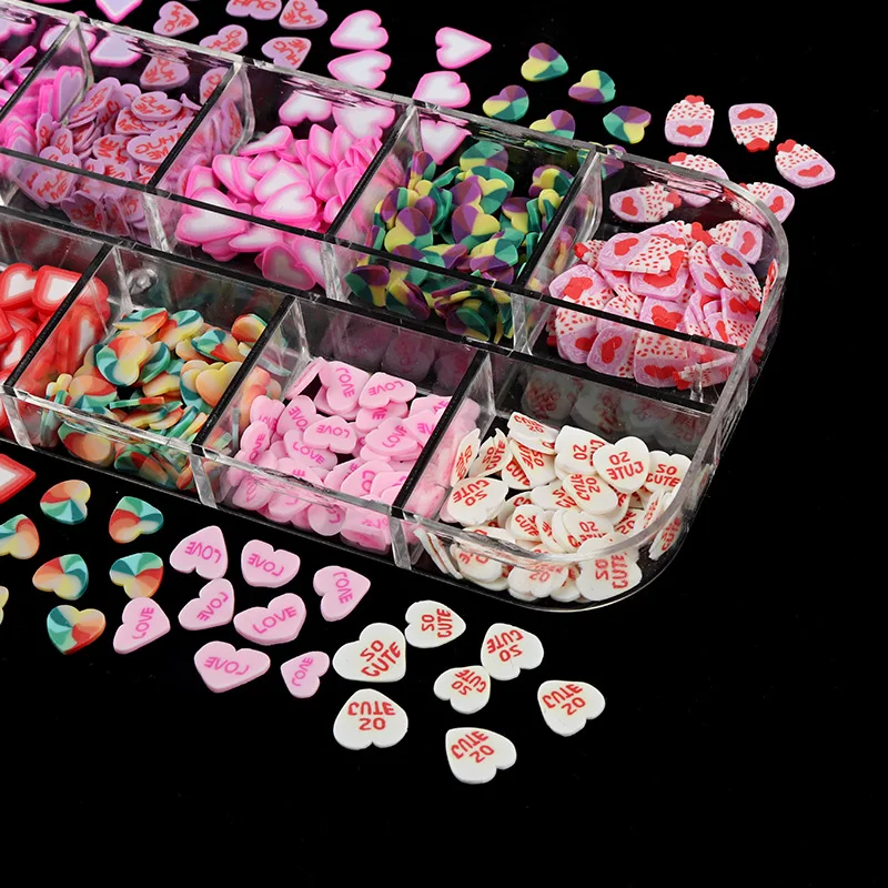 Набор из 12 ячеек в коробке, 3D декор для ногтей в форме сердца, кусочки полимерной глины, аксессуары для маникюра на День святого Валентина, профессиональный Декор