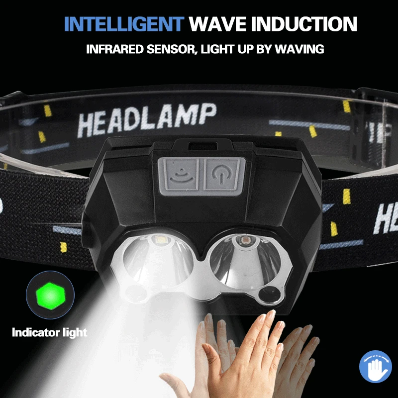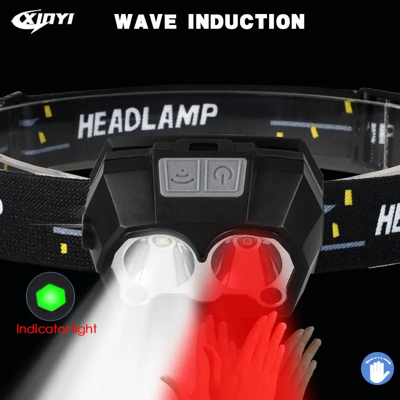 Светодиодный налобный фонарь 8000 Люмен, супер яркий датчик движения, мощный головной светильник, перезаряжаемый через USB, водонепроницаемый светильник