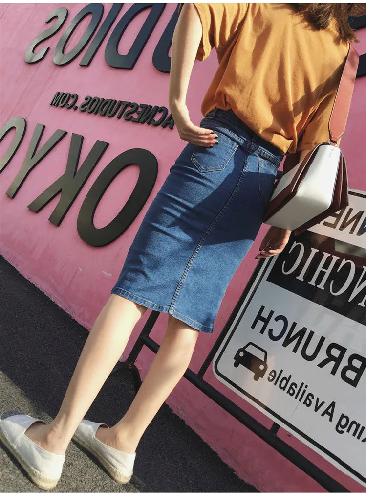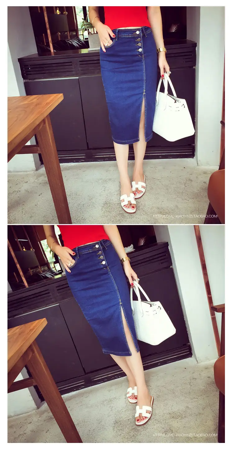 Новинка 2022, женские джинсовые юбки, винтажные однобортные Облегающие юбки в офисном стиле с высокой талией, повседневные женские летние юбки