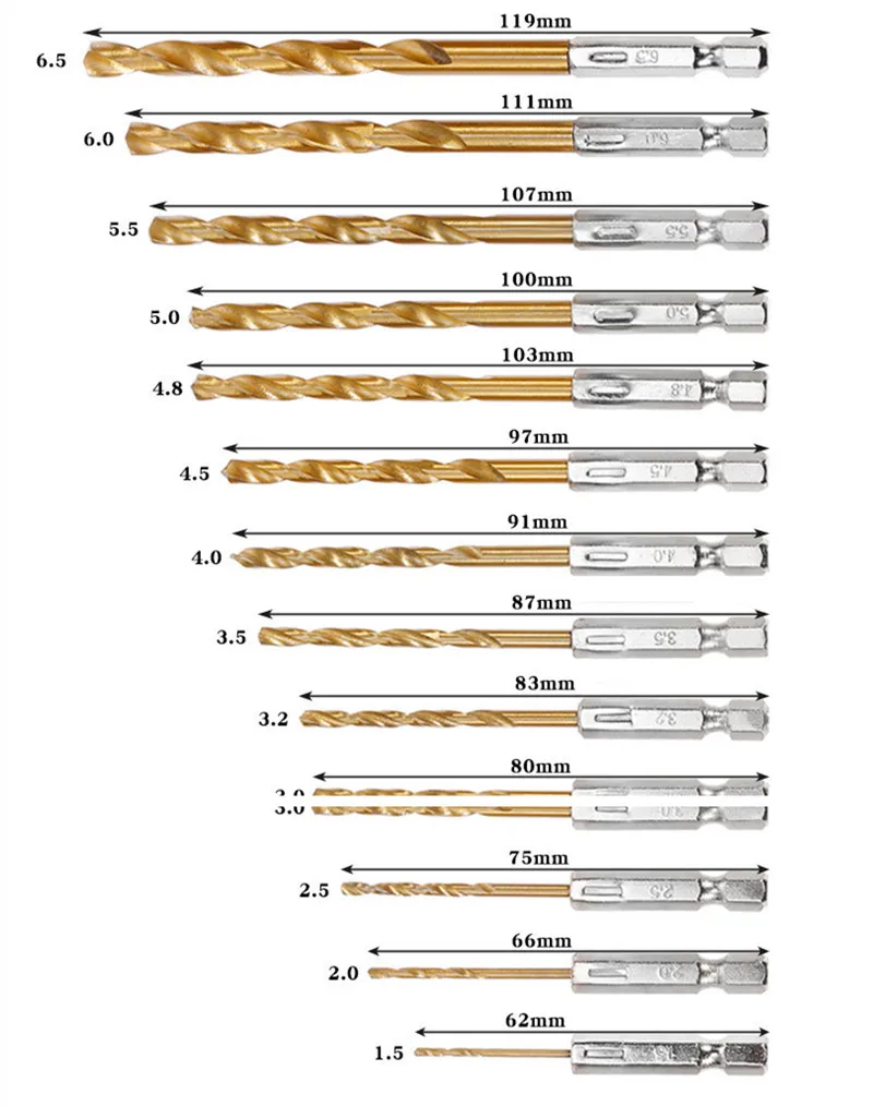 Спиральное сверло из быстрорежущей стали с титановым покрытием, 14-1,5 мм, 1 шт.