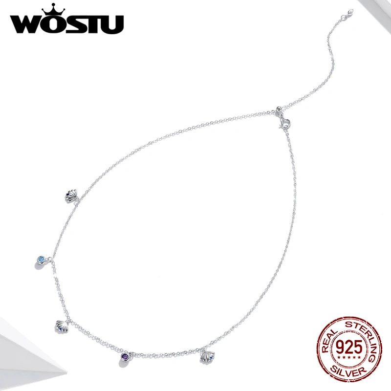 WOSTU, настоящее 925 пробы, серебро, яркий циркон, простое ожерелье...
