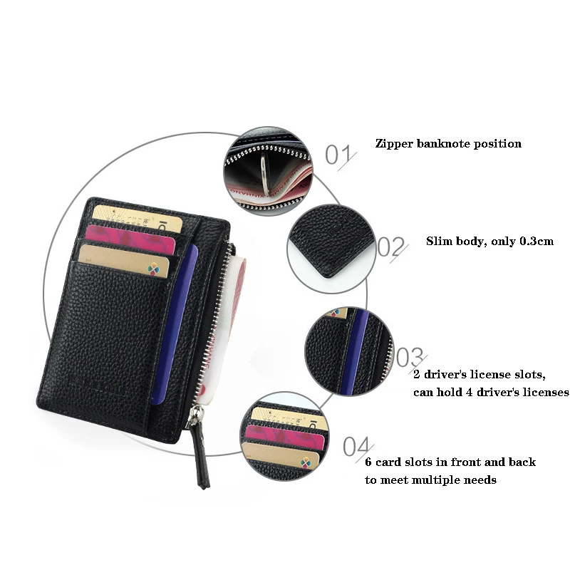 Мужские мини-держатели для удостоверения личности держатель для визиток из искусственной кожи тонкий чехол для банковских карт Органайзер женский кошелек на молнии унисекс