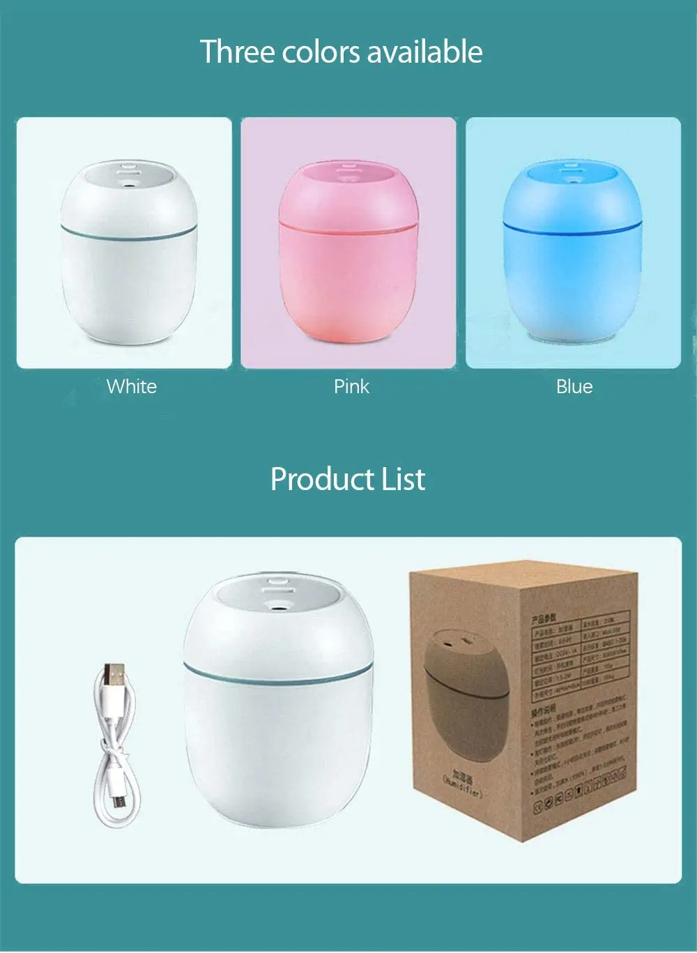 Ультразвуковой мини-увлажнитель воздуха, портативный USB-увлажнитель со светодиодной подсветкой, 200 мл, для дома и автомобиля