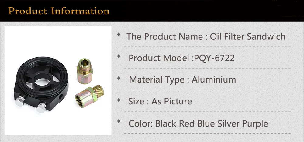 Сэндвич с масляным фильтром от Sick speed позволит вам устанавливать масляные охладители, датчики или отправку единиц без необходимости перемещать или просверлить ненужные отверстия в блоке двигателя. Двойное кольцо «О» для бесшовного и плотного соединения. Устанавливается в секунду Оснащен датчиком температуры масла и давления масла. Обеспечивает прямую установку между масляным охладителем и масляным фильтром без бурения или перемещения двигателя. Включает в себя 4 адаптера для широкого спектра автомобилей, включая 3/4x16,M20x1.5.Размеры и материал: