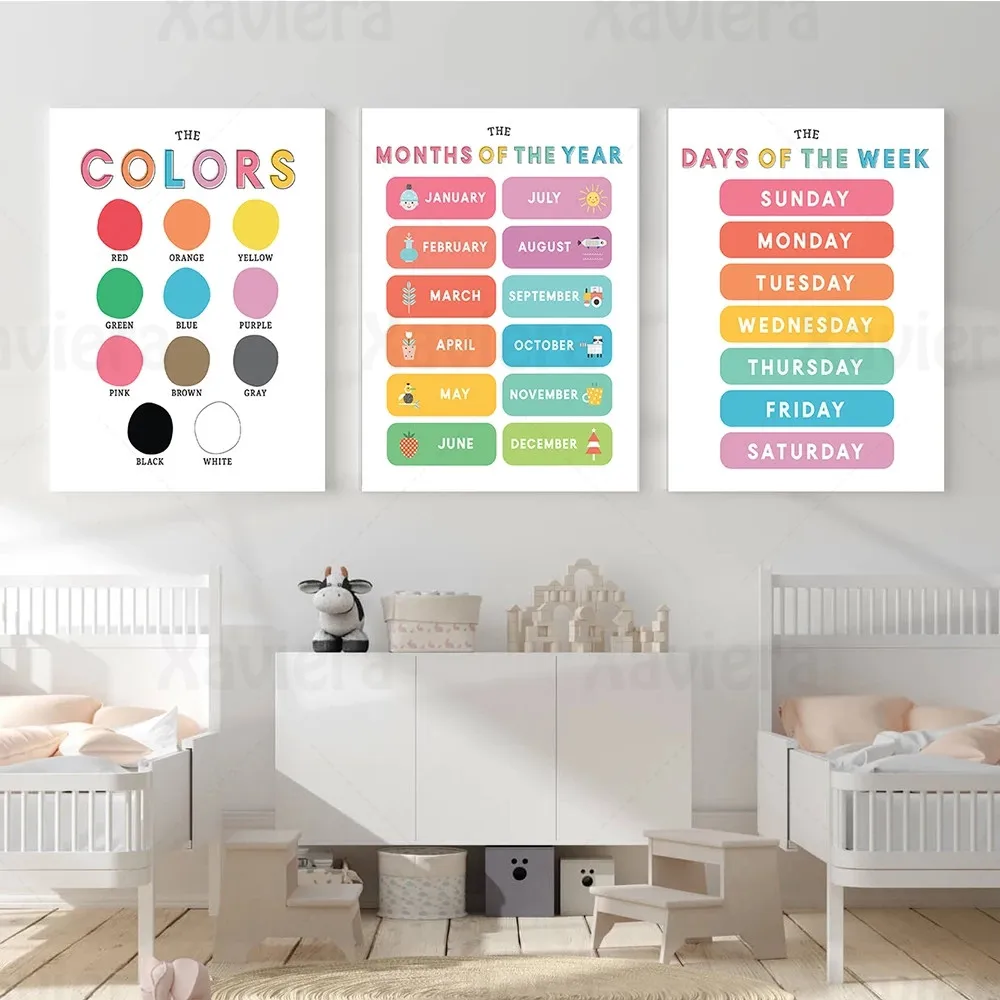 Обучающие Детские постеры для обучения цветовым моделям, фотография знаний о Днях недели и месяце, декор детской комнаты